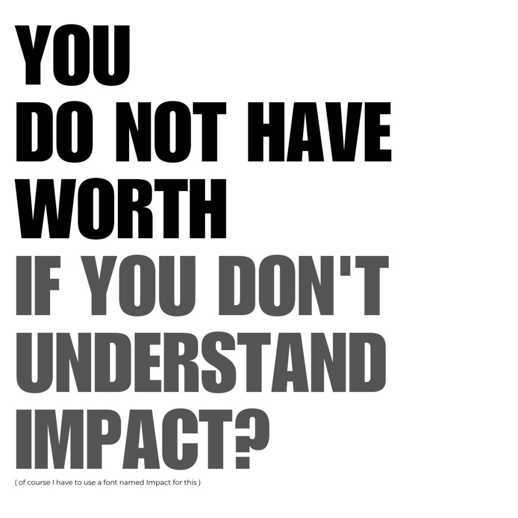 “You do not have worth if you don’t understand impact.” that statement, which I heard in a recent meeting (not directed to me) kept me thinking all weekend.