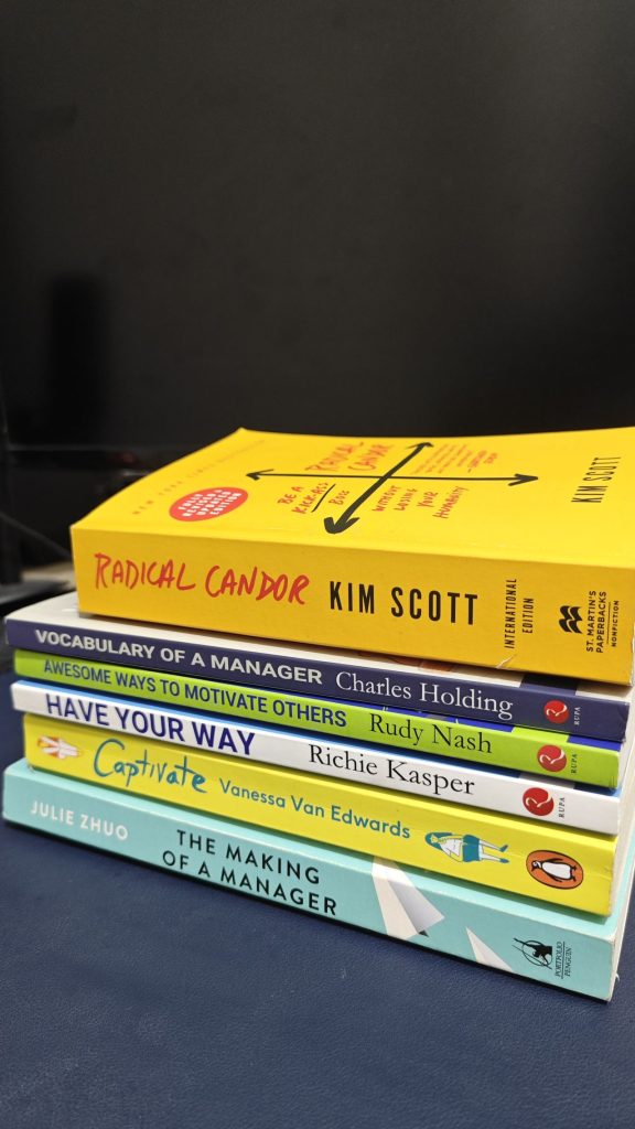 The books that I read are on leadership, motivation, feedback and communication. The biggest surprise for me was learning that good managers are not born leaders, they are built through practice, mistakes and reflection.