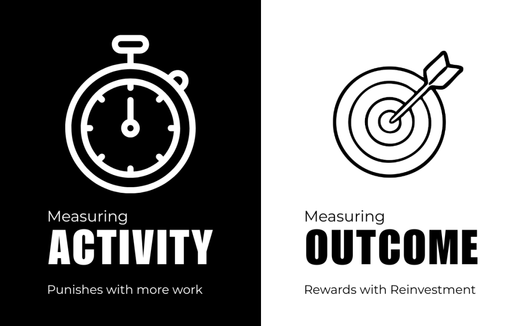 The solution to this is a fundamental shift; from measuring activity to measuring outcomes.